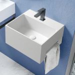 Lavatório suspenso com suporte para toalha em Corian®.